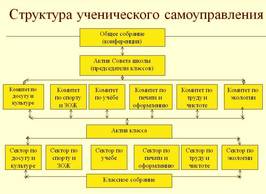 Структура ученического самоуправления может отличаться в зависимости от школы и норм, которые там приняты. Например, в классном самоуправлении могут быть: pedsovet.org